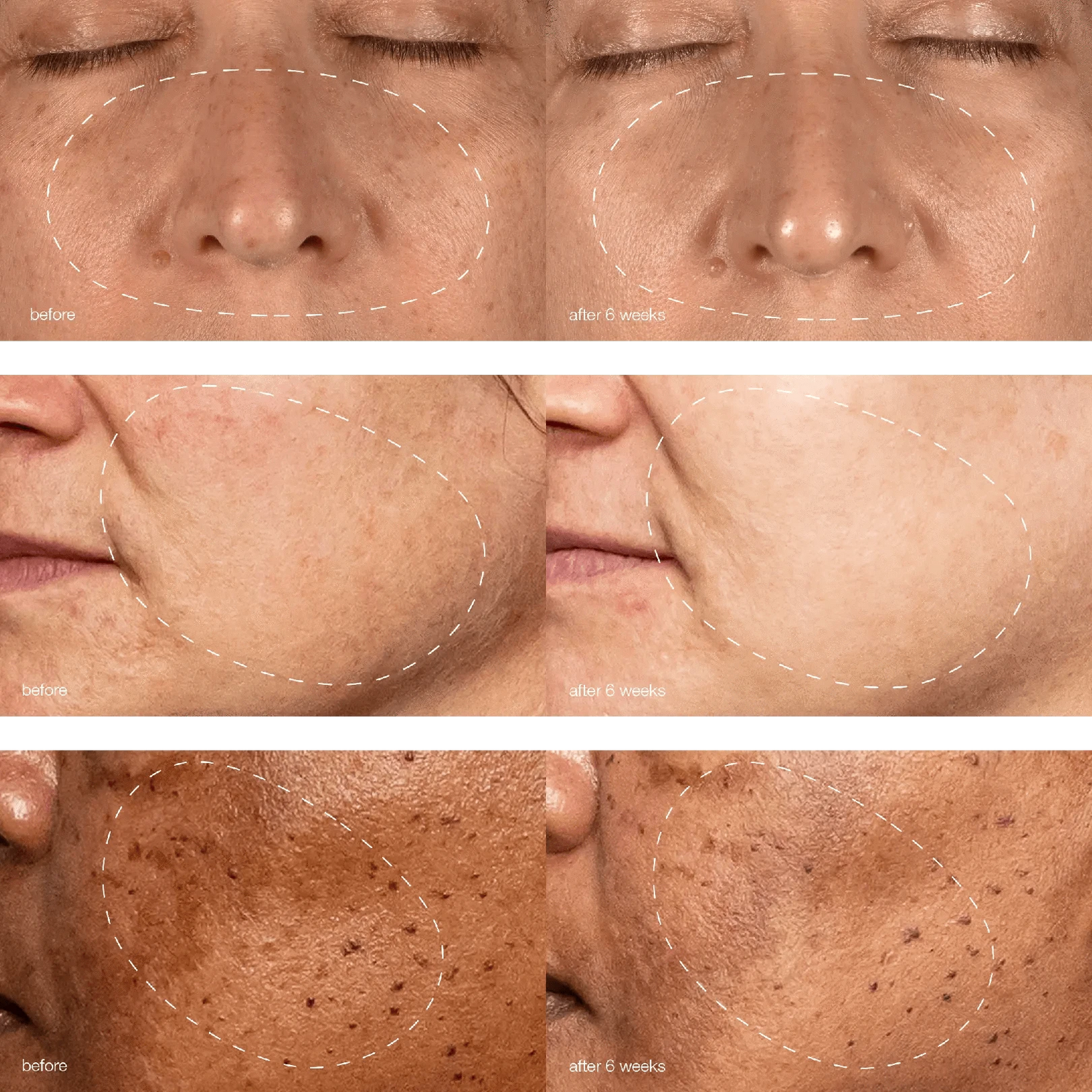 - Las áreas grandes propensas a la hiperpigmentación se reducen y se vuelven más pálidas.