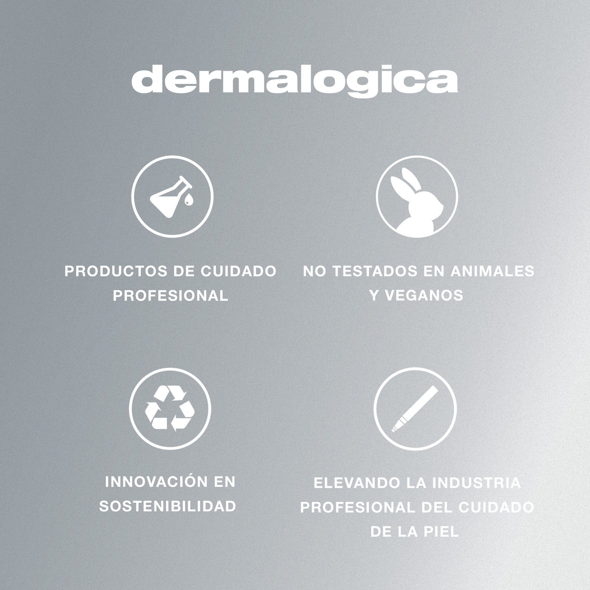 Todos los productos Dermalogica son veganos, sin parabenos, sin fragancias ni colorantes artificiales, sin gluten y sin crueldad animal certificados por Leaping Bunny y PETA. No realizamos pruebas con animales desde nuestra fundación en 1986.