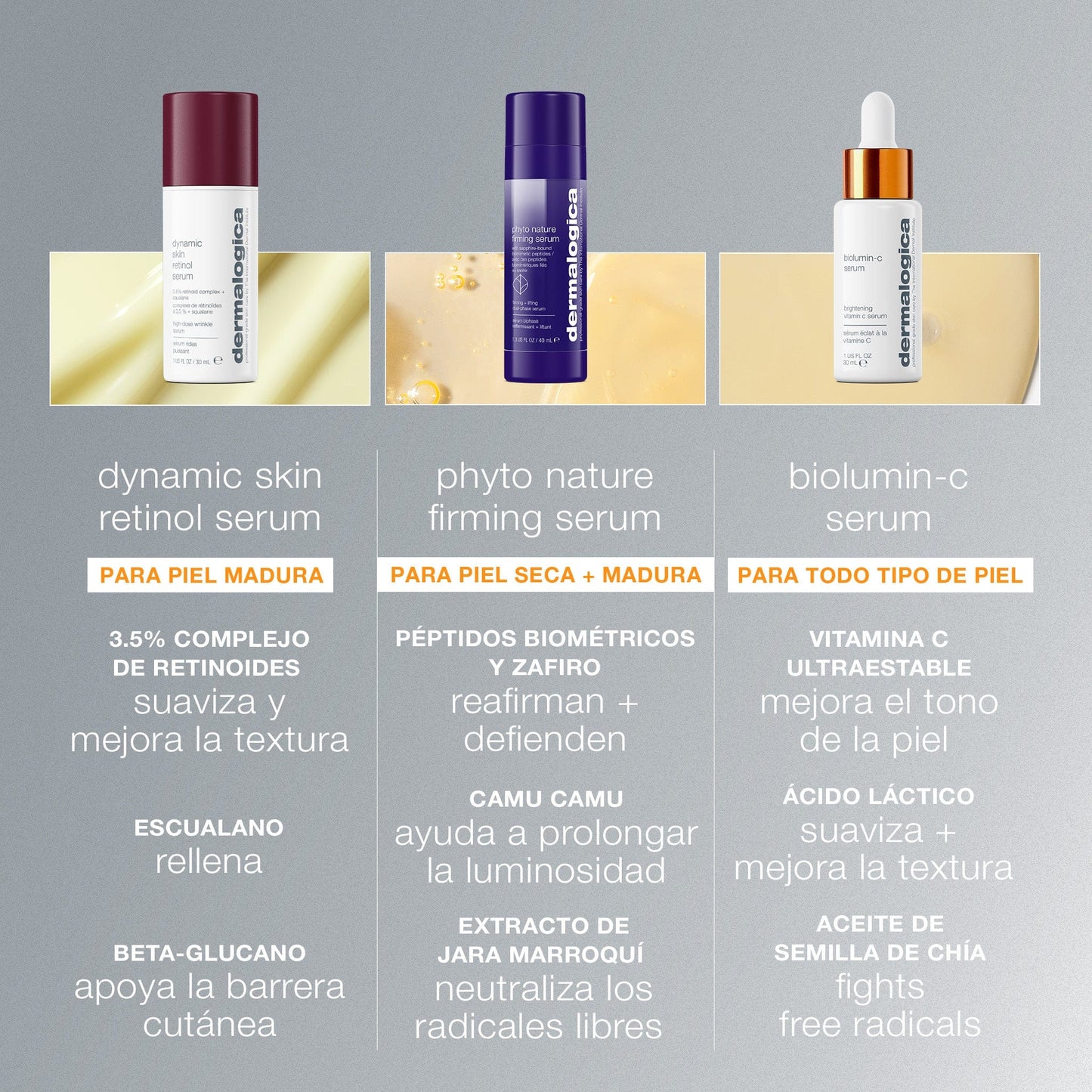 Piel normal a madura y signos de envejecimiento cutáneo.